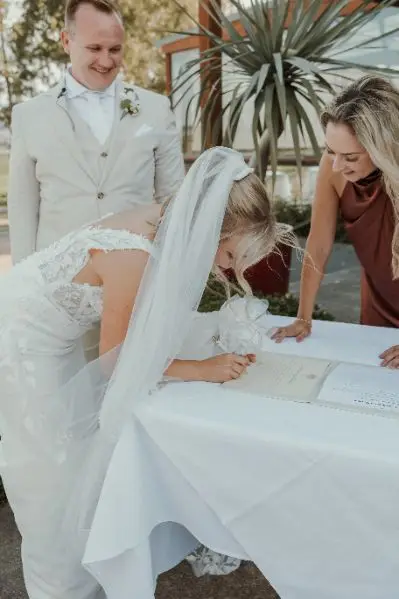 Posted on Kelli SoegemeierTrustindex verifies that the original source of the review is Google. Oh my gosh! I couldn’t love Jade anymore if I tried! From start to finish she made everything feel super stress free, easy and fun! She was approachable, easy to contact, so lovely & had such a bubbly personality and something about her that just made us feel so at ease. On the day of our wedding, Jade helped my partner through his crazy nerves and guided him through the ceremony and also was wonderful with my son who was having a bit of a meltdown. I would recommend anyone who is getting married to reach out to Jade, you will not be disappointed! XxPosted on Georgia ColeTrustindex verifies that the original source of the review is Google. Jade is the most spectacular celebrant. From the very start, Jade was extremely organised and approachable. She answered all the questions, completed all the 'behind the scenes' paperwork, made the whole process easy and took care of all the post wedding documents. She genuinely wants the ceremony to be as personalised as it can and suit the vibe of the couple - and she delivered. Jade bought so much joy, laughter and love to the ceremony and made it feel like she was a close friend of ours. She provided so much guidance throughout the process from writing vows, ceremony set up, songs, everything! We seriously can't recommend her higher and are grateful to have found her for our special day! Bryce and Georgia xPosted on Christina Le (JustChriiis_X)Trustindex verifies that the original source of the review is Google. Jade was amazing and helpful when it came down to my wedding preparations. She helped us with tips and advices when we needed to write our vows and the moment that we have stood up at the altar. She made everything stress free and smooth. Highly recommend Jade if you need a celebrant for your wedding! Thank you once again Jade. XxPosted on Lauren TaylorTrustindex verifies that the original source of the review is Google. Jade is Amazing. She really does everything to make the process of marriage so easy and special. She gives off the energy as if you have known her forever, so down to earth and personable! Not only is she is there to hold your hand from understanding marriage and what it means to be married, writing vowels, and making us feel perfect and confident on the big day, Jade also takes time to know our story, and put thought into how to share this at the ceremony tailoring this to our personality. After the wedding, Jade gets the documents sent off so we know that everything is done correctly and legally. Cannot be more happy with the celebrant we chose for our marriage!Posted on Chiara MinaleTrustindex verifies that the original source of the review is Google. We are so grateful to have had Jade as our celebrant! From start to finish, she was absolutely amazing. She made the whole process so easy and stress-free, guiding us every step of the way with warmth and care. On the day, Jade created a ceremony that was everything we could have hoped for, full of love, laughter, and perfectly “us.” She made us feel so comfortable and relaxed, and so many of our guests commented on how beautiful and full of love the ceremony was. We couldn’t have asked for a better celebrant – thank you, Jade, for making our day so special! - Gabe & Chiara xxPosted on Jack WinterTrustindex verifies that the original source of the review is Google. We had Jade as our celebrant for our wedding in Mount Tamborine, and she was absolutely perfect for our day! From the very first meeting, she brought such a fun, relaxed, and joyful energy that matched us perfectly. She made the ceremony feel personal, heartfelt, and filled with laughter, exactly what we were after!Posted on FelicityTrustindex verifies that the original source of the review is Google. We honestly couldn’t have asked for a better celebrant! From the very beginning, she was bubbly, warm, and so down-to-earth — exactly the kind of energy you want around you on such a big day. She took the time to really listen to every question and concern we had, and tailored the ceremony so beautifully to reflect both of us as a couple. It felt personal, romantic, and so genuinely us. The booking process was super smooth, and she came prepared with everything we needed speakers, mic, and all the little touches that made the ceremony flow perfectly. She was also amazing at keeping nerves in check! A lovely phone call before the big day helped calm everything down, and on the day, she was a reassuring presence especially for my hubby! She knew just when to guide him, tell him when to turn around, and helped everything go off without a hitch. We’re honestly so grateful. Highly recommend to anyone wanting a celebrant who is organised, heartfelt, and a true joy to have on your wedding team. ❤️Posted on Tia Paige YoungsonTrustindex verifies that the original source of the review is Google. We couldn’t have asked for a better celebrant than Jade! From the very beginning, she was quick to reply, easy to work with, and brought such a fun, relaxed energy to the whole process. She always answered my texts (even when they weren’t at the best times!) and took the time to call and clarify details so that everything ran smoothly on our wedding day. Jade made the lead-up stress-free and the ceremony itself light-hearted, meaningful, and perfectly us. She has the perfect balance of professionalism and humour, and we are so grateful we had her as part of our day. I honestly can’t recommend her highly enough—if you’re looking for a celebrant who is organised, approachable, and genuinely fun, Jade is the one!Posted on Grace ChrispTrustindex verifies that the original source of the review is Google. What can I say, the moment we met Jade we knew that she was going to be our celebrant - we immediately cancelled all other celebrant appts. She went above and beyond, made the ceremony run so smoothly, organising wi